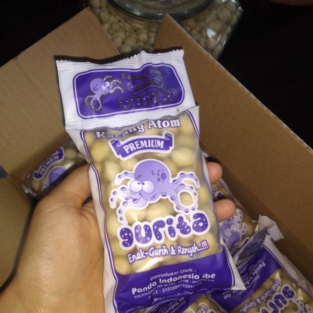 Snack yang satu ini hadir dalam rasa asli.. Dikemas dalam plastik dengan gambar panda yang menggemaskan, ukurannya beragam mulai dari 155 gram hingga 300 gram. Kacang shanghai ikan mas atom malang legendarisrp14.500: Kacang atom ini memiliki porsi kecil sekitar 250 gram. Snack yang satu ini hadir dalam rasa asli. Kacang ini akan membuatmu tak berhenti mengunyah karena rasa kacangnya sangat lezat dan juga renyah. Kacang berbalut tepung berbumbu nan lezat ini cocok banget untuk menemanimu bersantai di sore hari. Kacang atom shanghai gangsar 140grrp6.250:. Kacang ini akan membuatmu tak berhenti mengunyah karena rasa kacangnya sangat lezat dan juga renyah.
